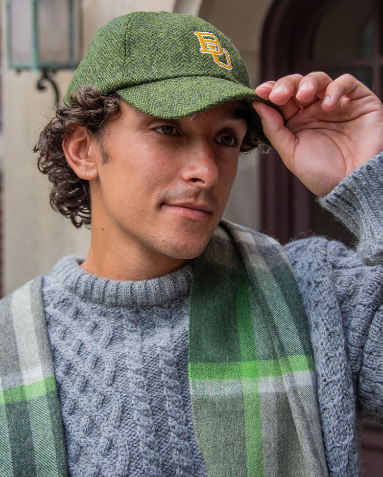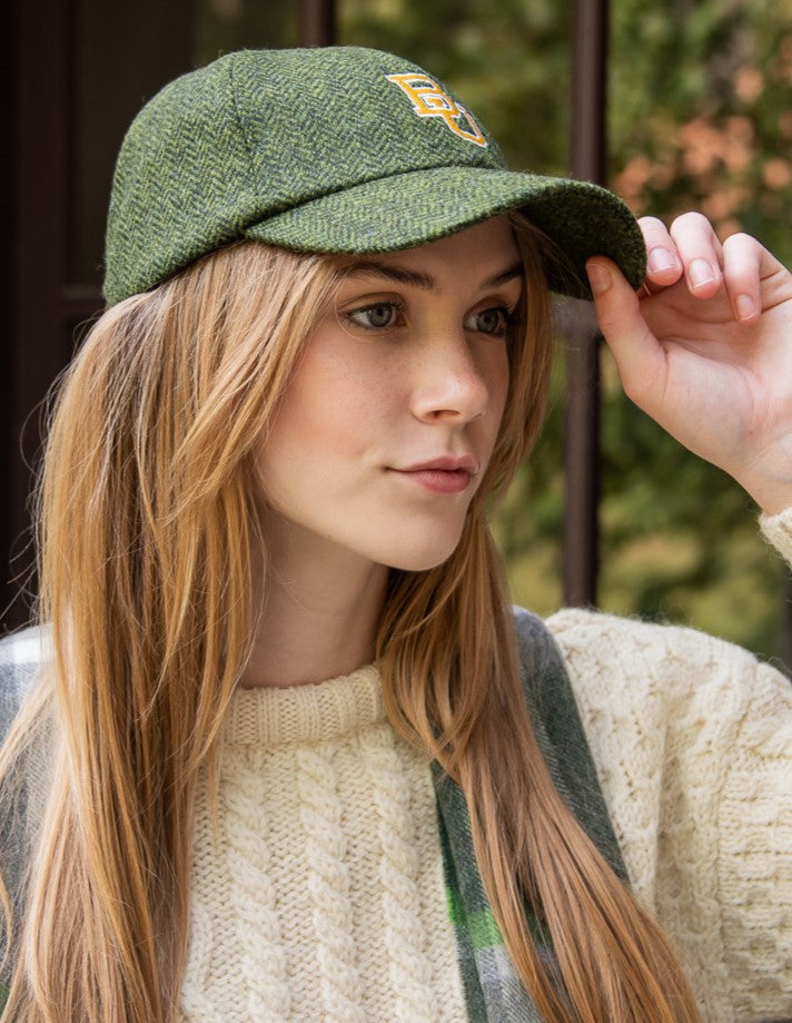 Green Herringbone Tweed Baseball Cap