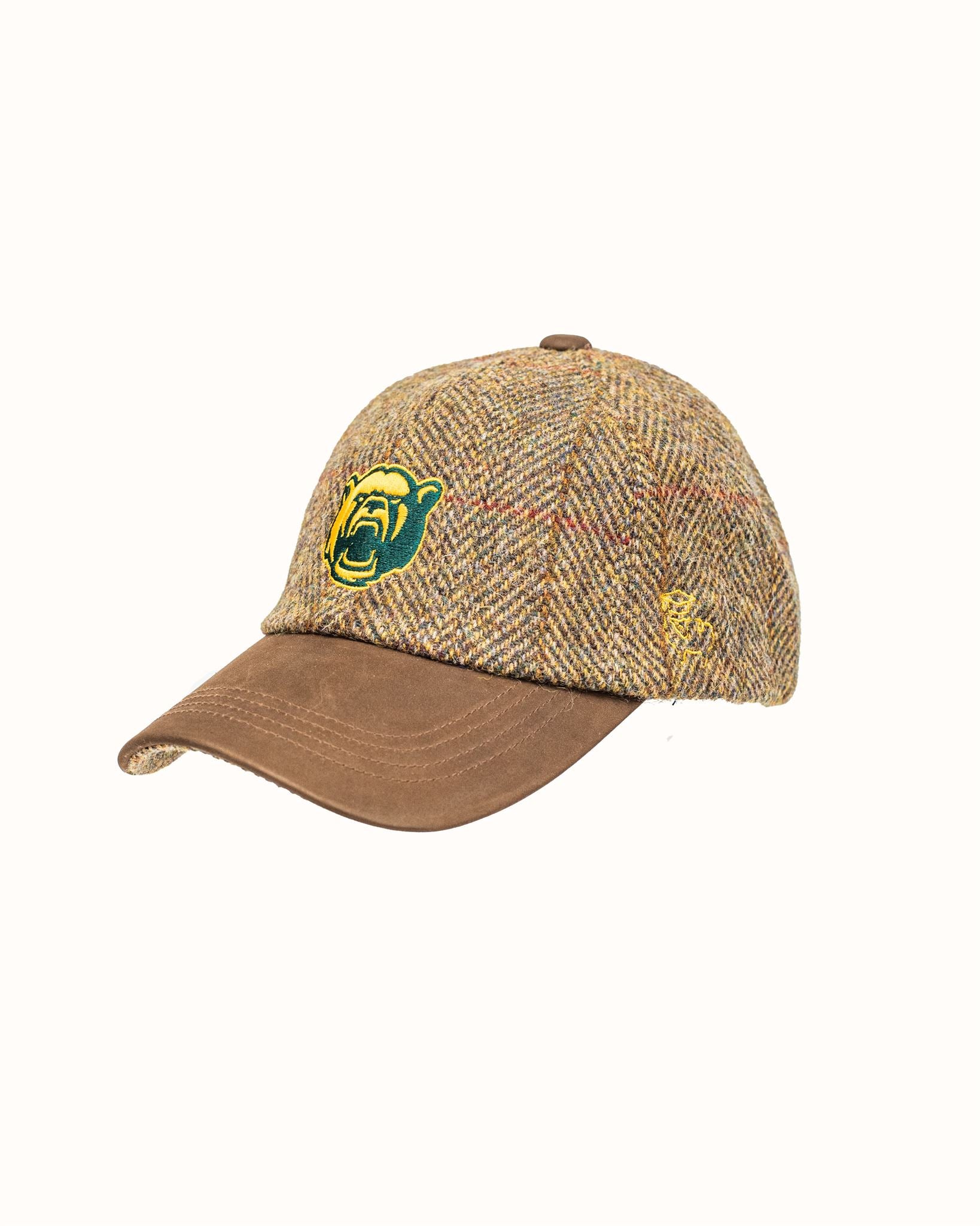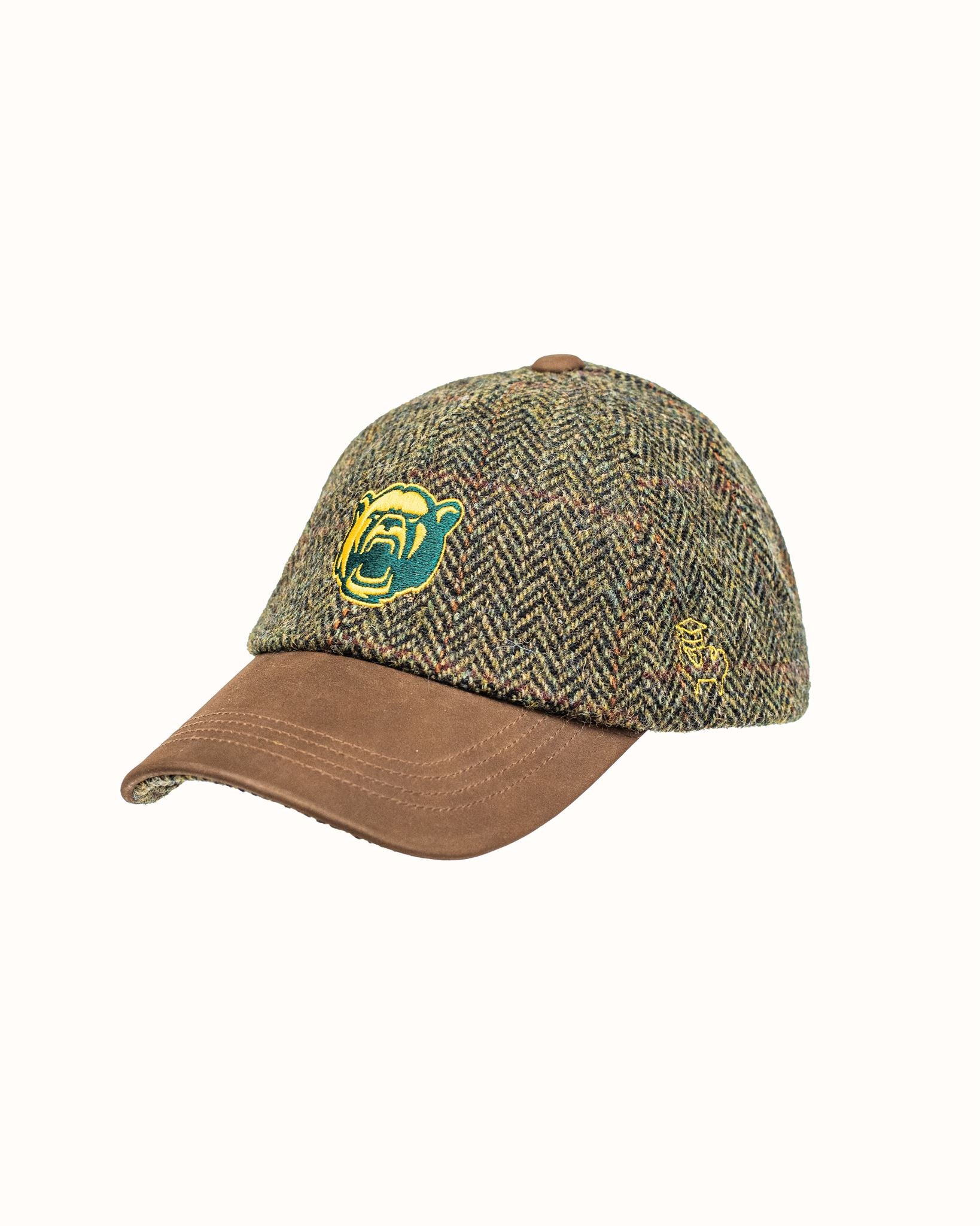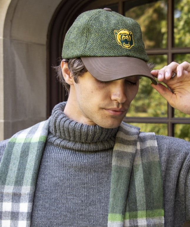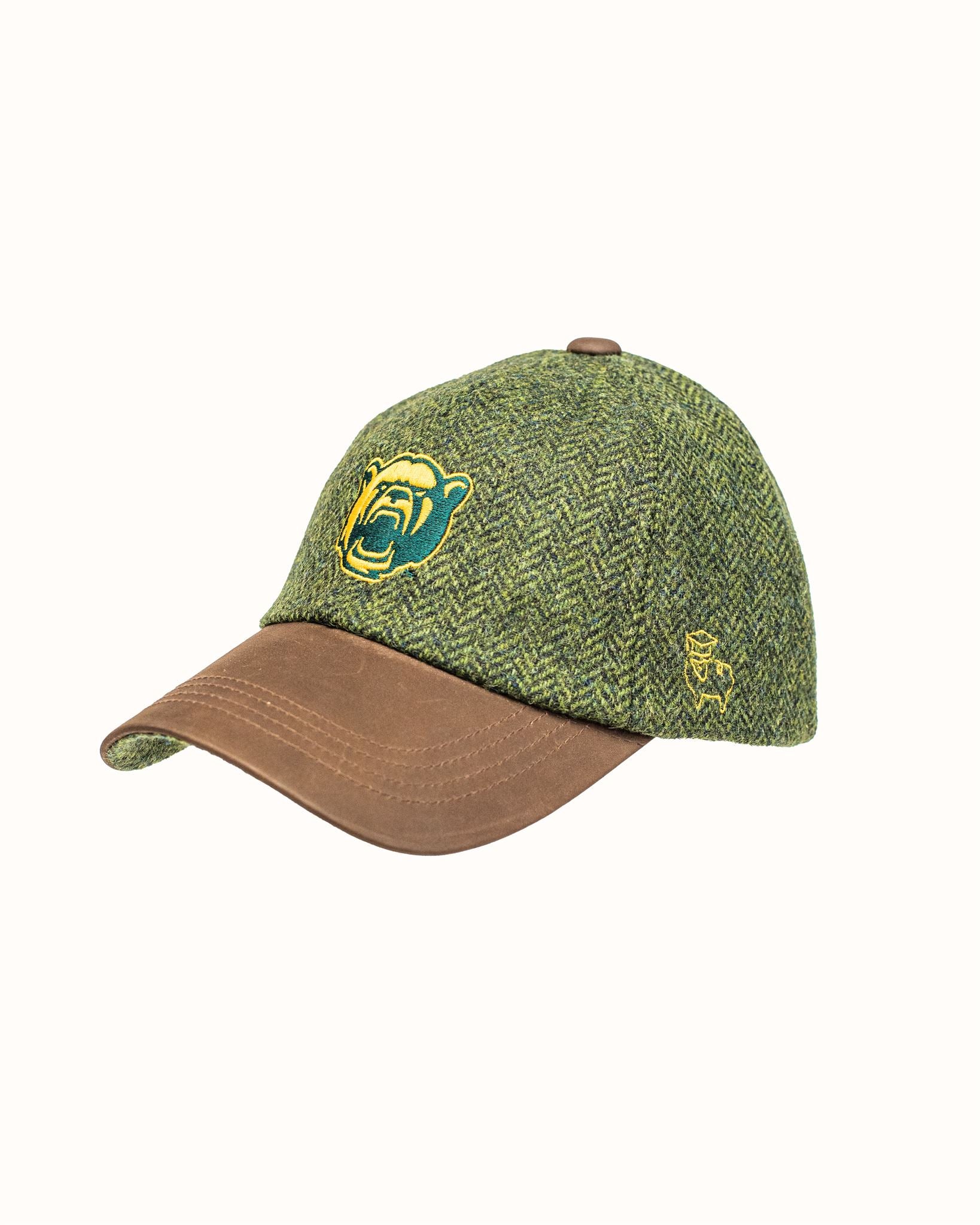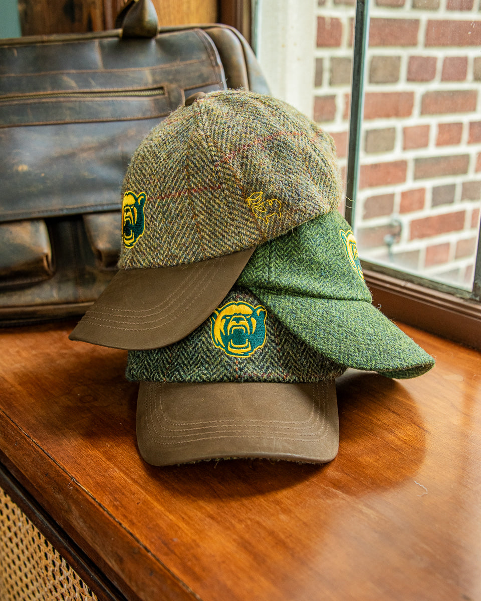 Olive/Gold Harris Tweed Baseball Cap with Leather Bill