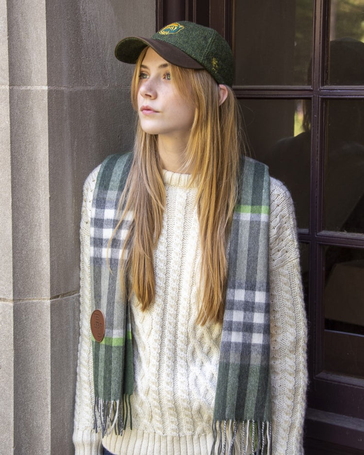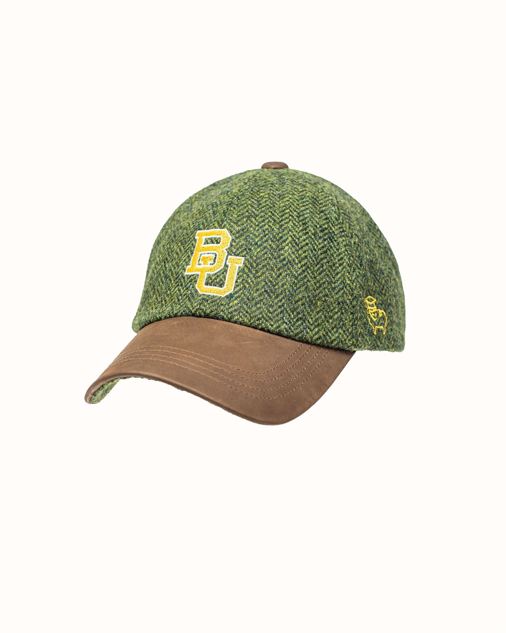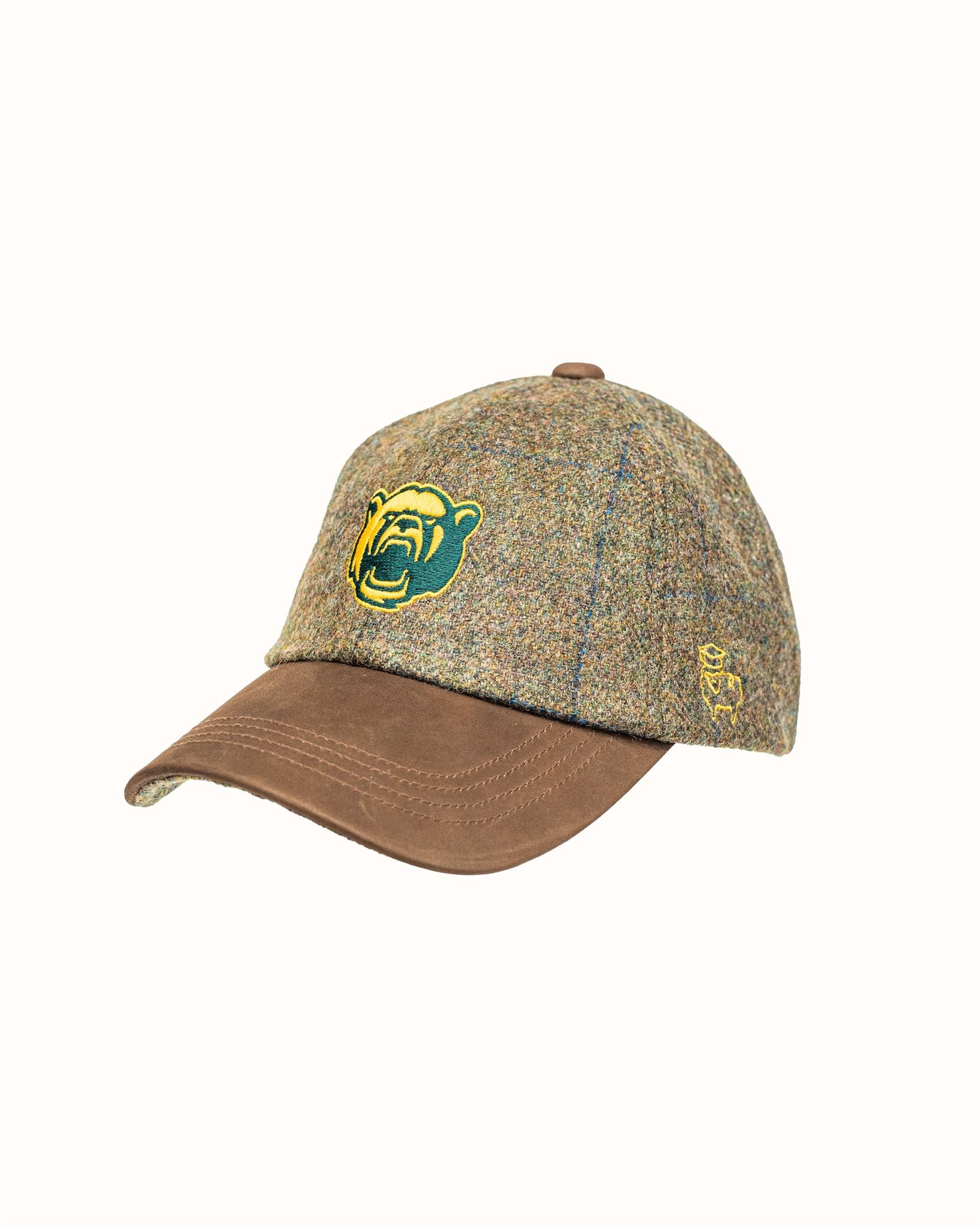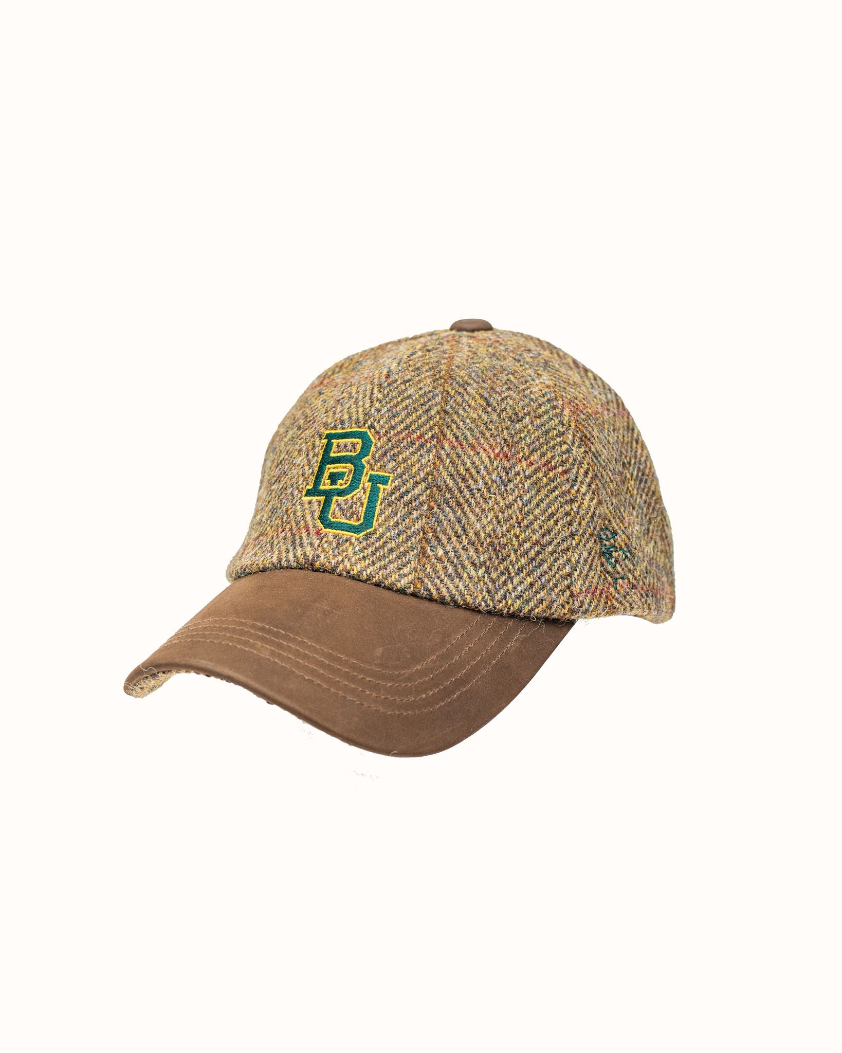 Olive/Gold Harris Tweed Baseball Cap with Leather Bill