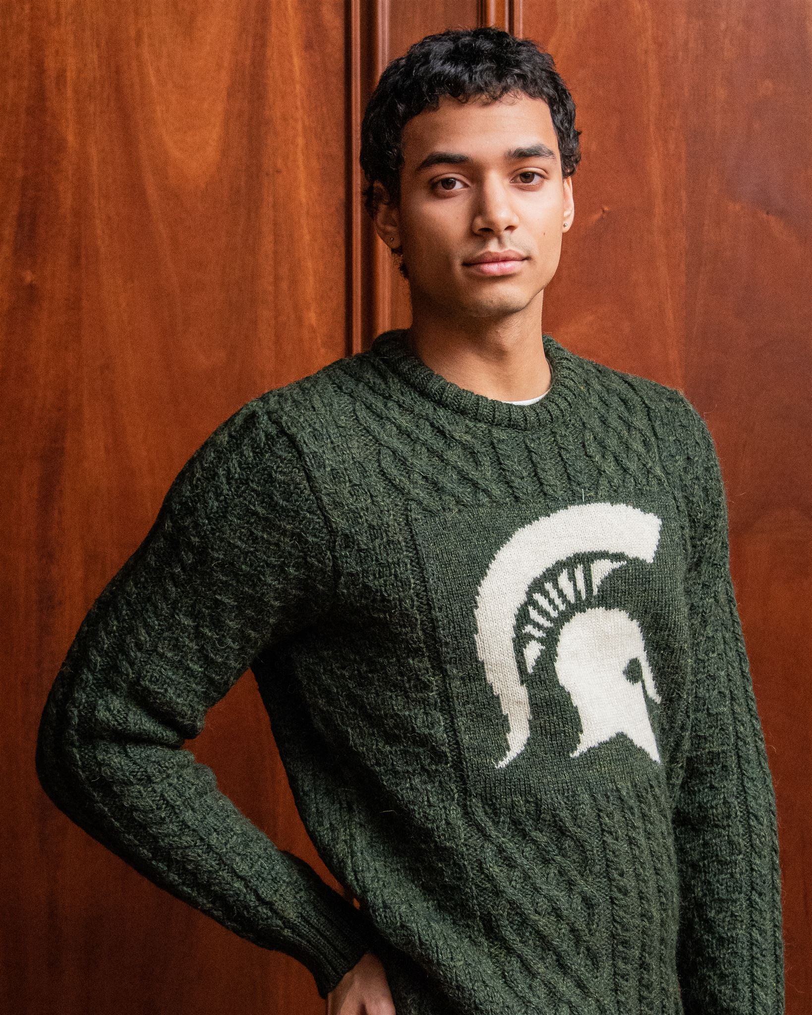 A limited-edition knitwear collection made from the finest natural fabrics and inspired by the esteemed traditions of Michigan State University, one of America’s preeminent public universities.