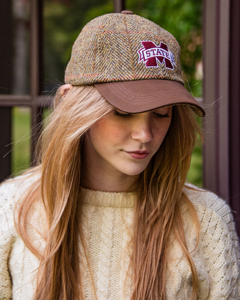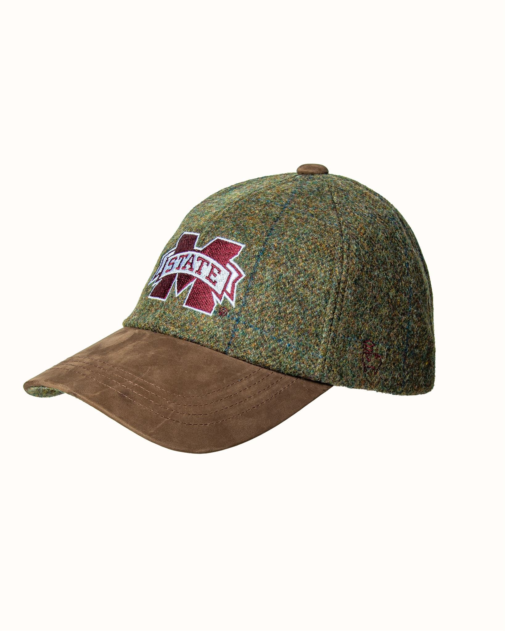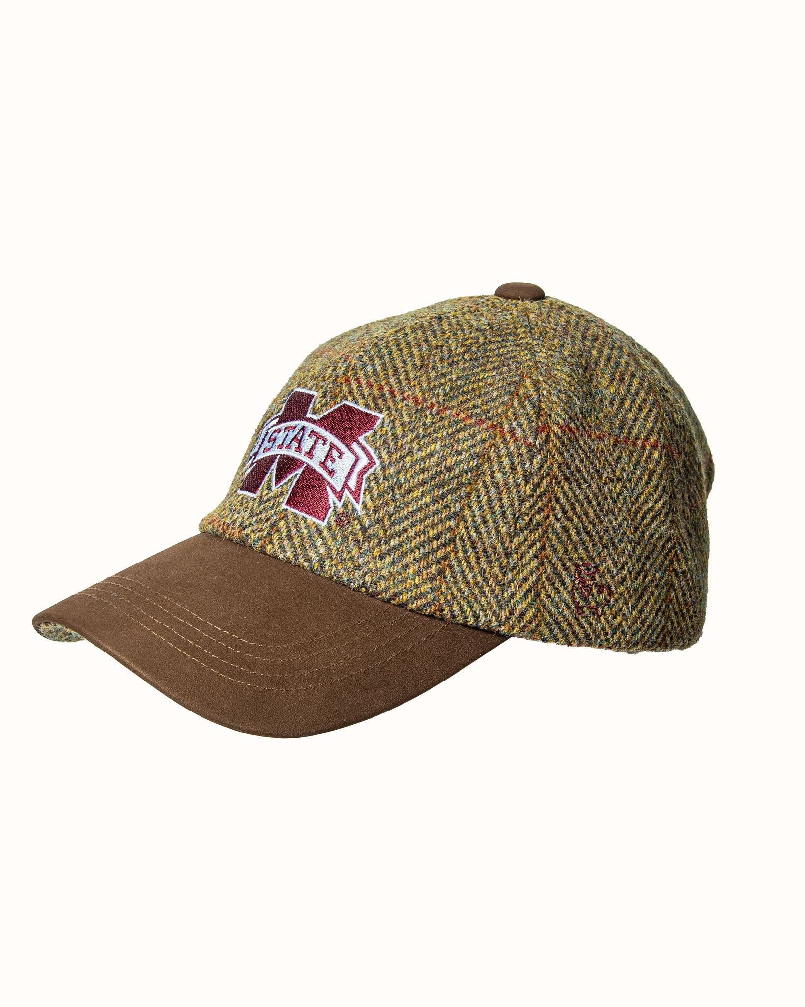 Olive/Gold Harris Tweed Baseball Cap with Leather Bill