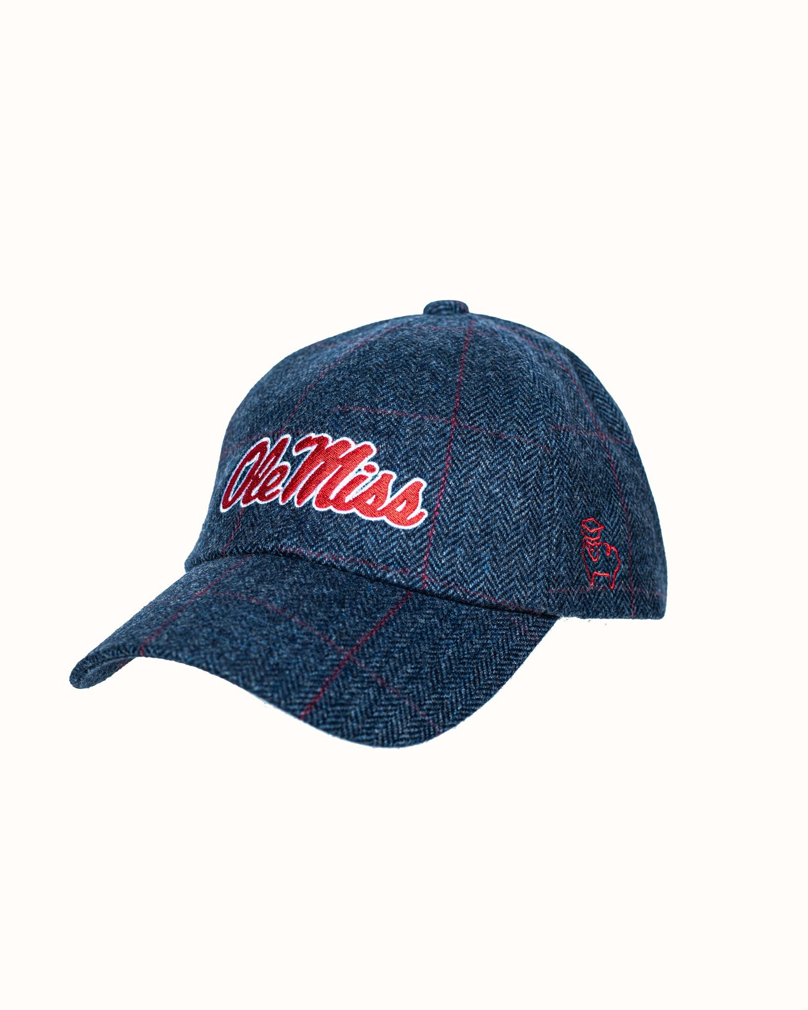 Blue Herringbone/Red Pinstripe Wool Baseball Cap