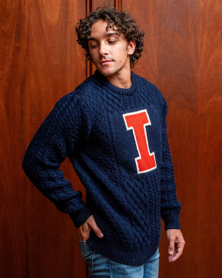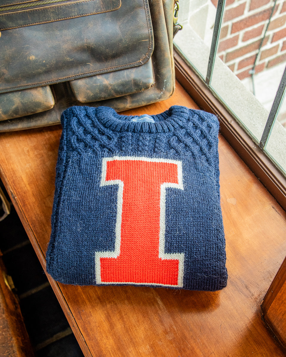 A limited-edition knitwear collection made from the finest natural fabrics and inspired by the esteemed traditions of the University of Illinois, one of America’s most beloved public universities.