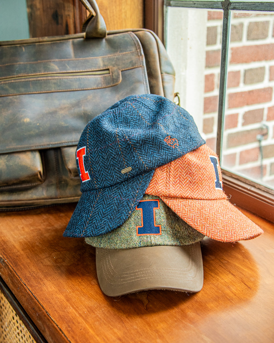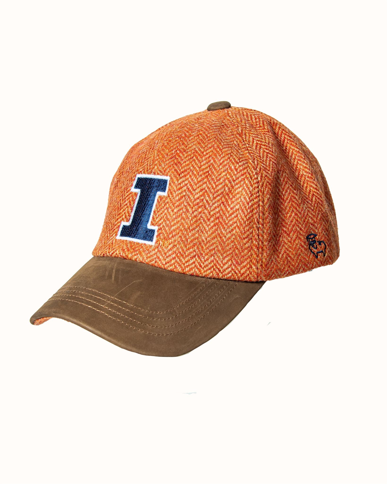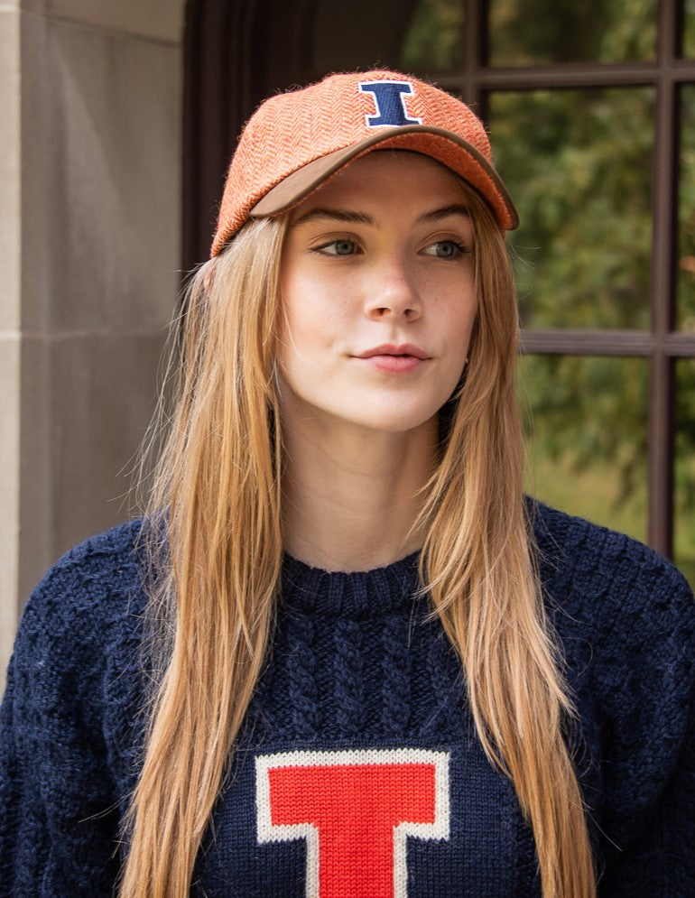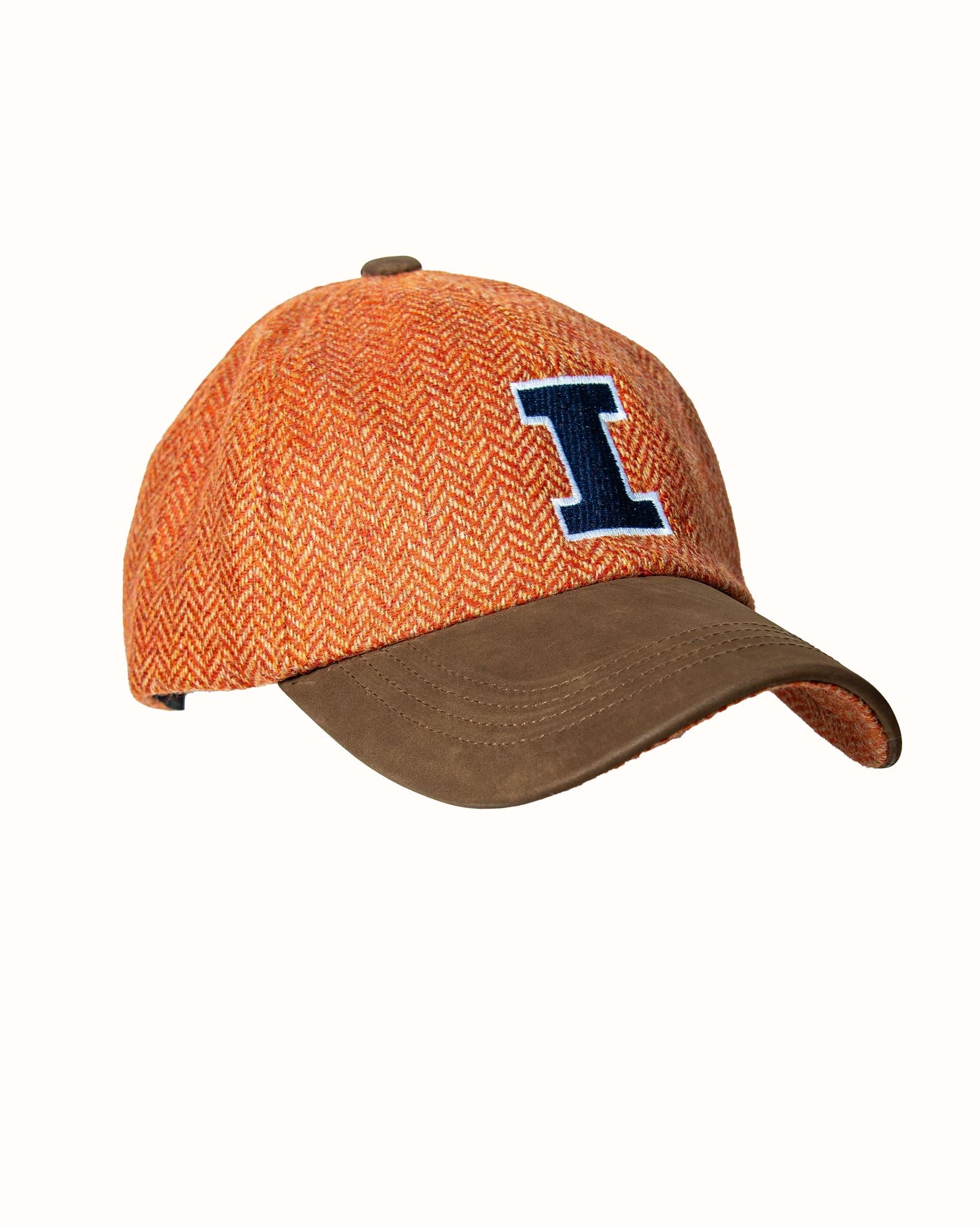 Orange Herringbone Wool Baseball Cap with Leather Bill