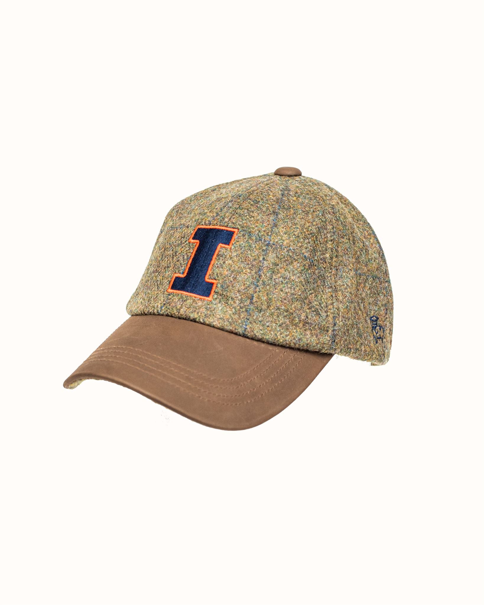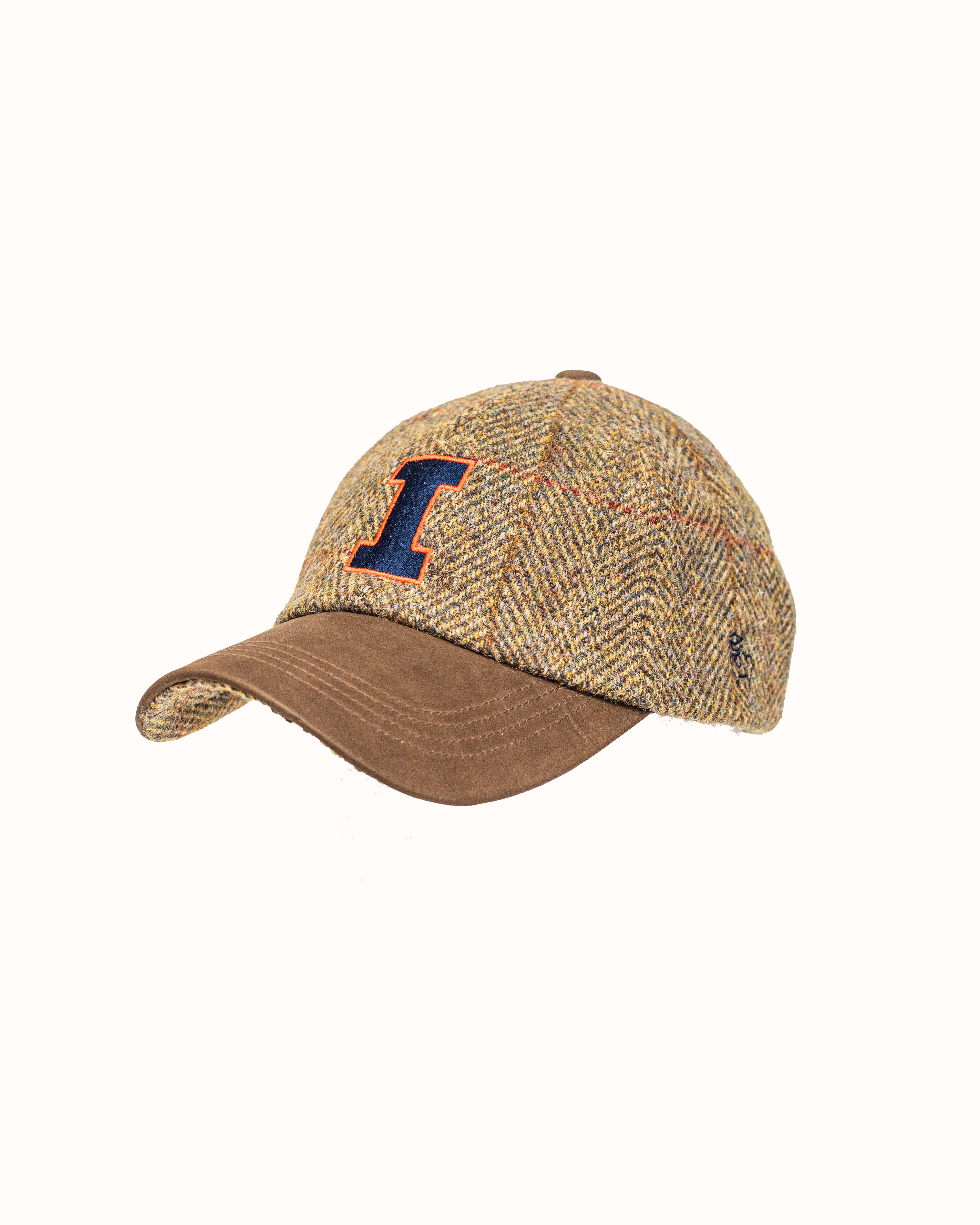 Olive/Gold Harris Tweed Baseball Cap with Leather Bill