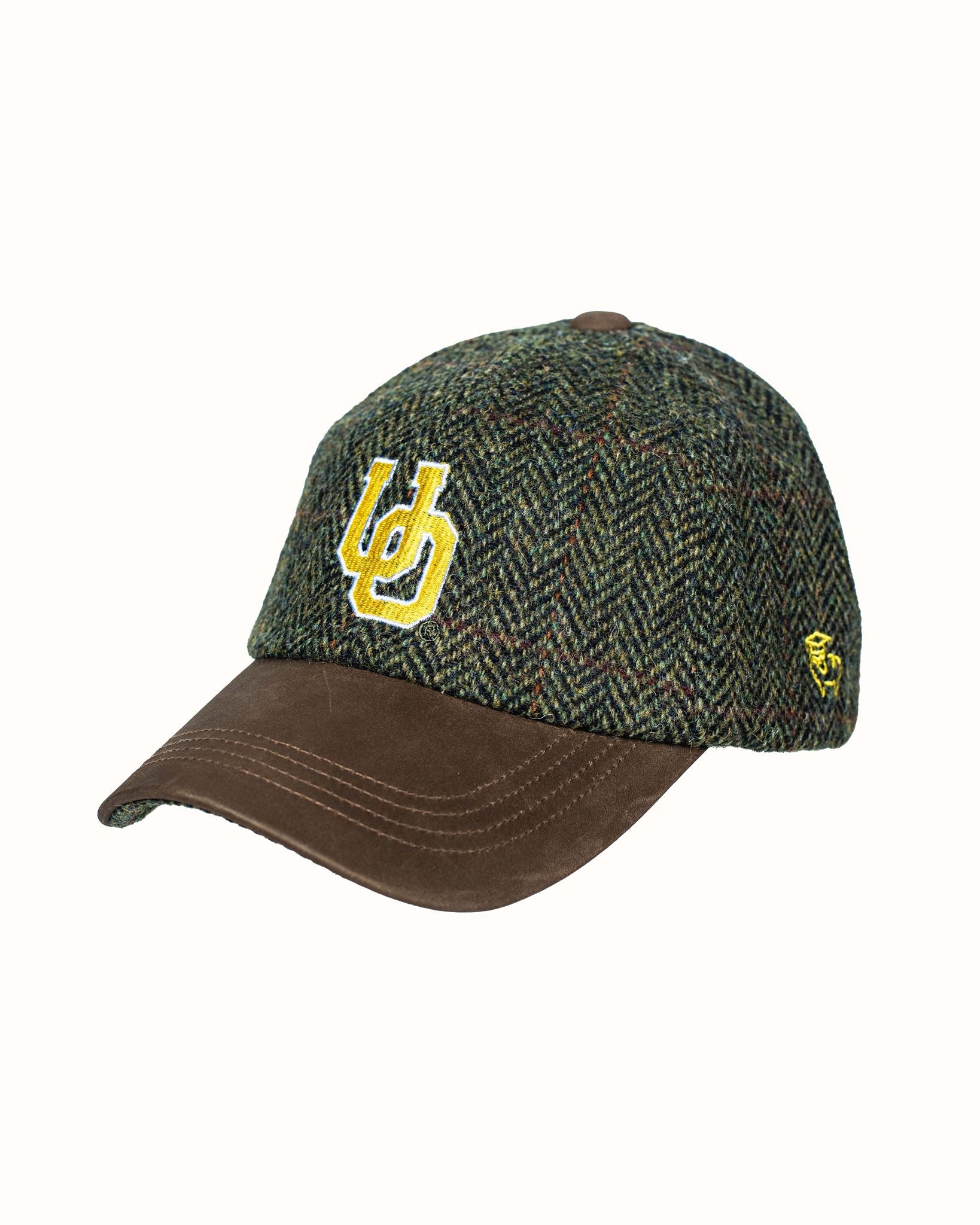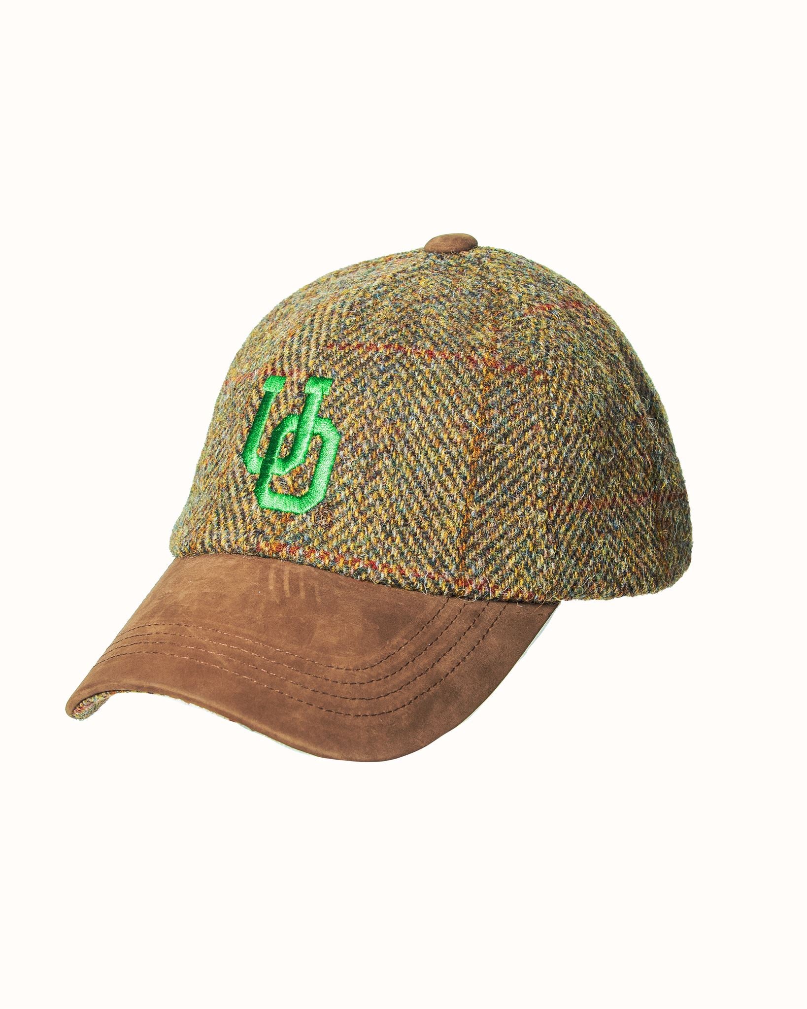 Olive/Gold Harris Tweed Baseball Cap with Leather Bill