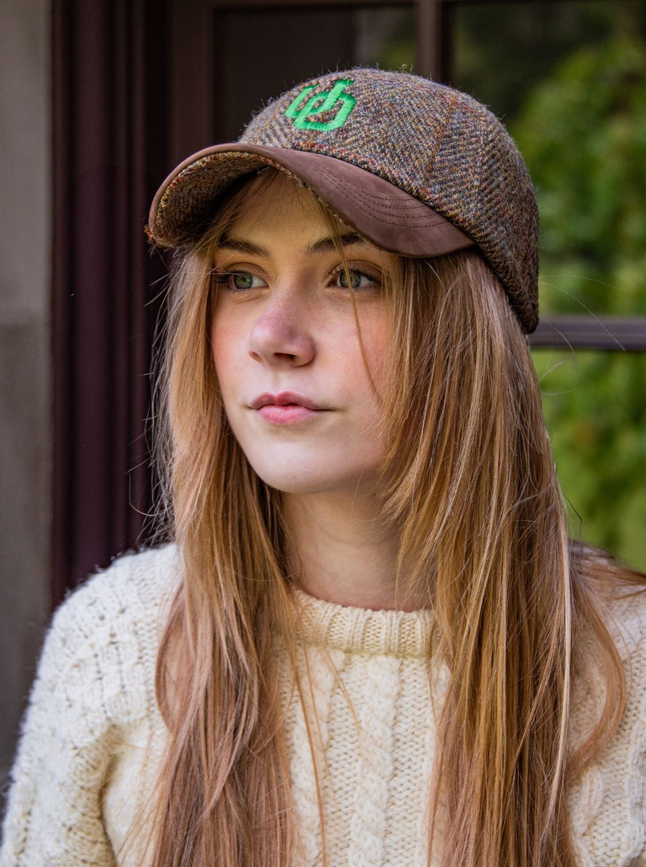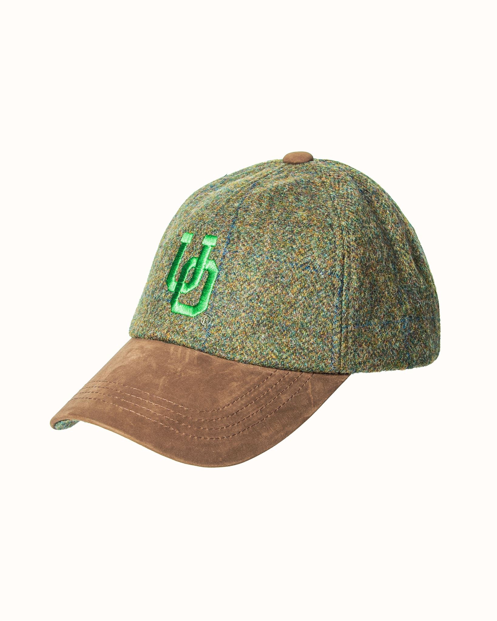 Loden/Gold Harris Tweed Baseball Cap with Leather Bill